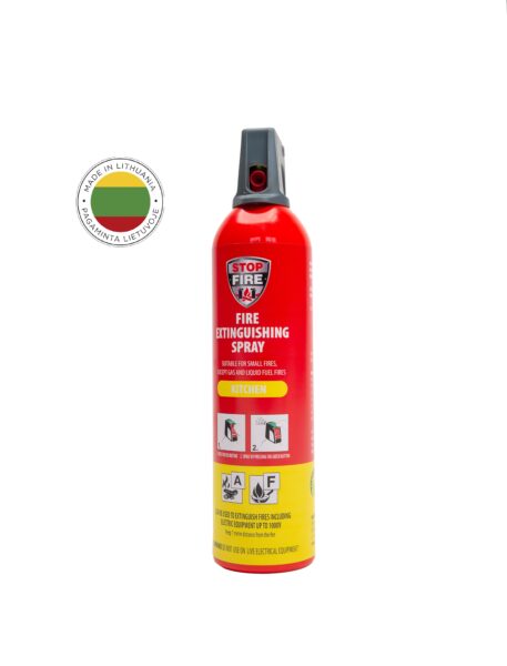 This water and AFFF foam fire extinguishing spray will quickly and effectively extinguish any fire in the early stages – faulty electrical wiring, flammable liquid leaks, fires of curtains caused by candles, fires caused by cigarettes, burning microwaves or a pie left in the oven. Ideal for indoor use as it does not contain toxic or harmful substances.